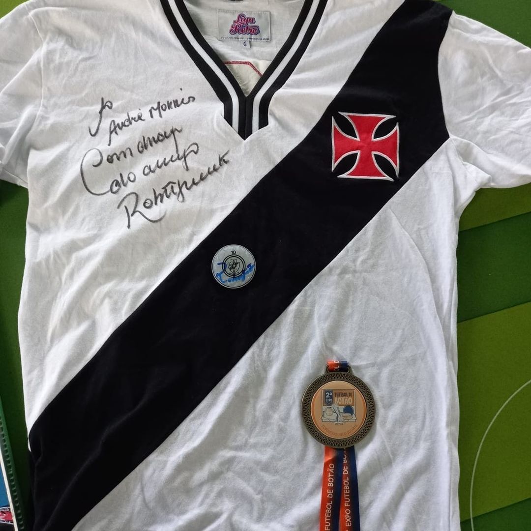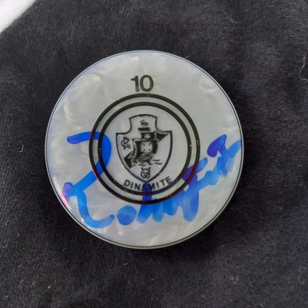 E aproveitou para autografar camisa e Botão com o ídolo @rdinamite10 💢