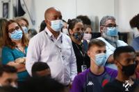 – Fico muito feliz de vir aqui falar para a base do Vasco sobre racismo. É um tema de extrema importância. Como professor, negro que também sofro racismo diariamente, falar sobre isso com esses meninos é muito importante. Que eles possam compreender o que é racismo. Não praticar e combatê-lo como futuros jogadores profissionais. Isso é muito importante na formação humana deles. E isso tem muito a ver com o Vasco também, que é um clube historicamente identificado no combate ao racismo. Então, eles como parte do Vasco, é fundamental que entendam e se posicionem – disse o professor José Nilton Júnior, antes do Gerente Geral da Base, Rodrigo Dias, completar: