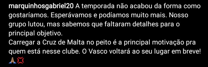 Marquinhos Gabriel: 'A temporada não acabou da forma como gostaríamos'