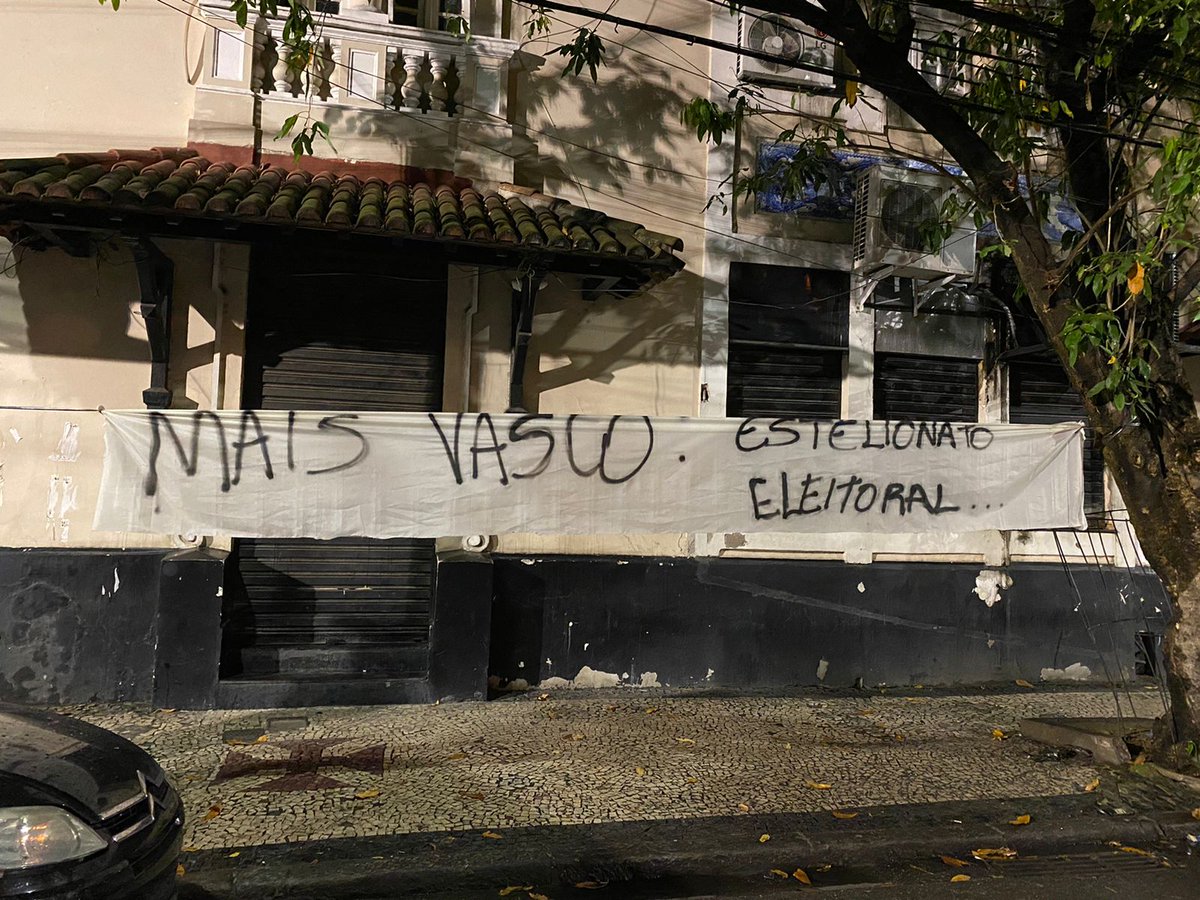 Na madrugada desta terça pada quarta-feira, faixas foram colocadas ao redor de São Januário e nas proximidades da atual sede administrativa do clube, no centro. A possibilidade de transformação do futebol do Vasco em s/a desagradou parte da torcida. #lanceVAS