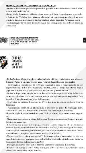 Logo quando chegou ao Vasco, Alexandre Pássaro renegociou contratos e conduziu um processo de rescisão de 10 atletas onerosos e/ou que não seriam aproveitados. Em seu relatório, o executivo diz ter gerado - com acordos e movimentações que evitaram ações trabalhistas - uma economia de R$ 7,8 milhões ao clube.
