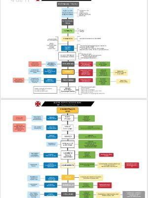 No total há 10 fluxogramas subdivididos em análise de desempenho, análise de mercado, rotina de treinos, rotina de concentração e jogos, protocolo pós-lesão e também os feitos em conjunto com o departamento de Relações Públicas, Maketing e Assessoria para as rotinas de jogos e treinos englobando Vasco TV, redes sociais, comunicação com a imprensa e etc.