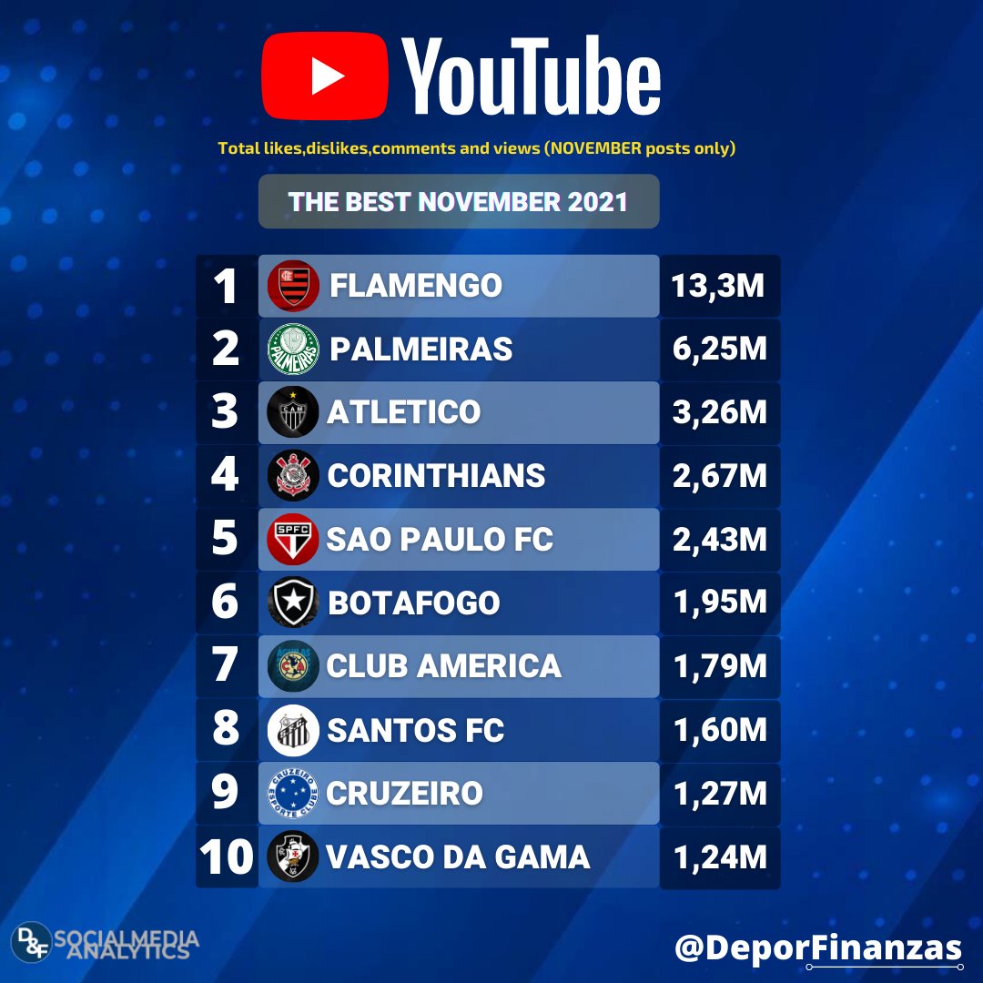 📲⚽ AMERICA ⏯ Best clubs on #YouTube during november 2021!