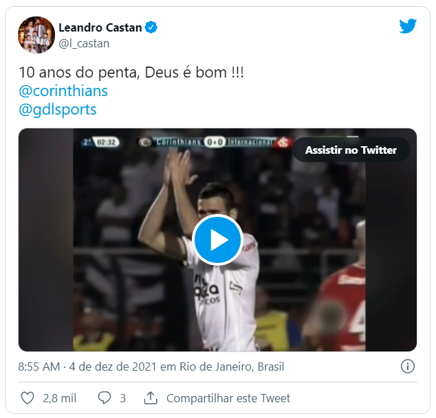 Leandro Castan comemora os 10 anos de título do Corinthians contra o Vasco e irrita torcedores