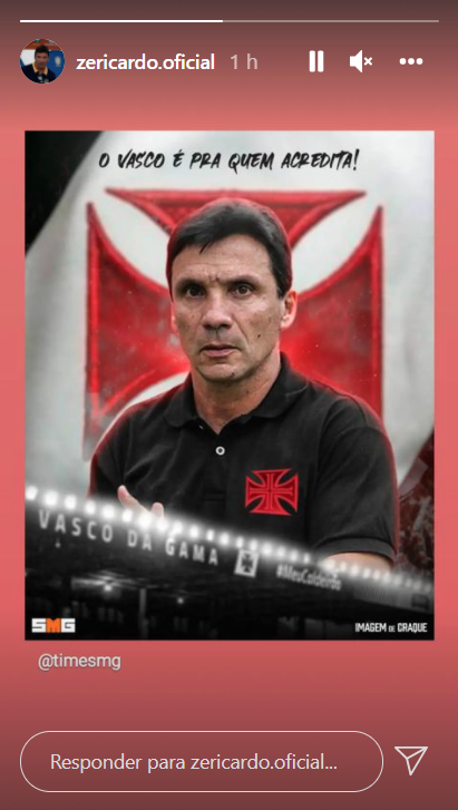 Zé Ricardo posta imagem no Instagram com os dizeres 'O Vasco é pra quem acredita!'