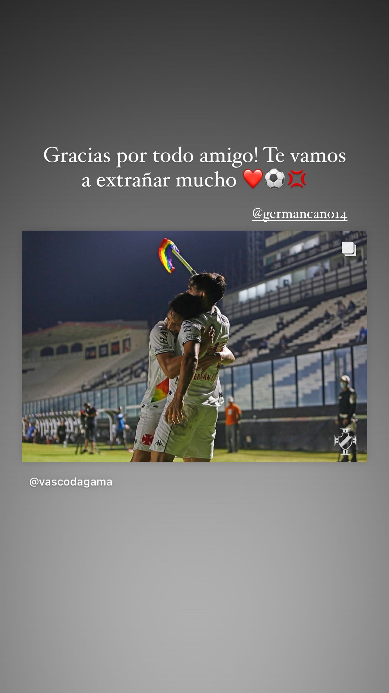 06/12/21 - Vasco publica vídeo de agradecimento a Germán Cano