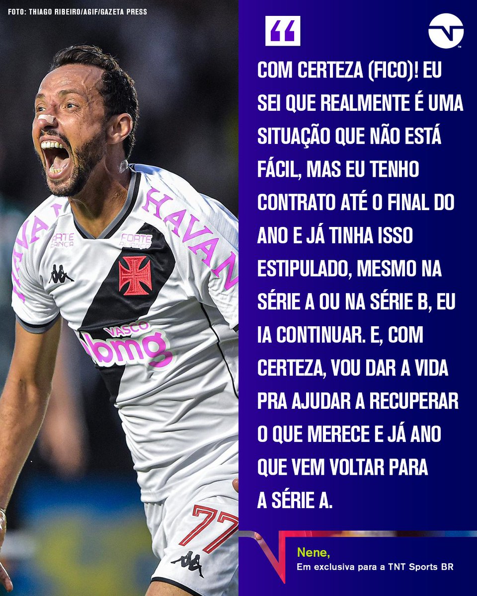 FICA E TÁ MOTIVADO! Em papo exclusivo com a nossa @isabelapagliari, Nene confirmou que segue no Vasco e 'vai dar a vida' pra colocar o clube na Série A! Será que volta?