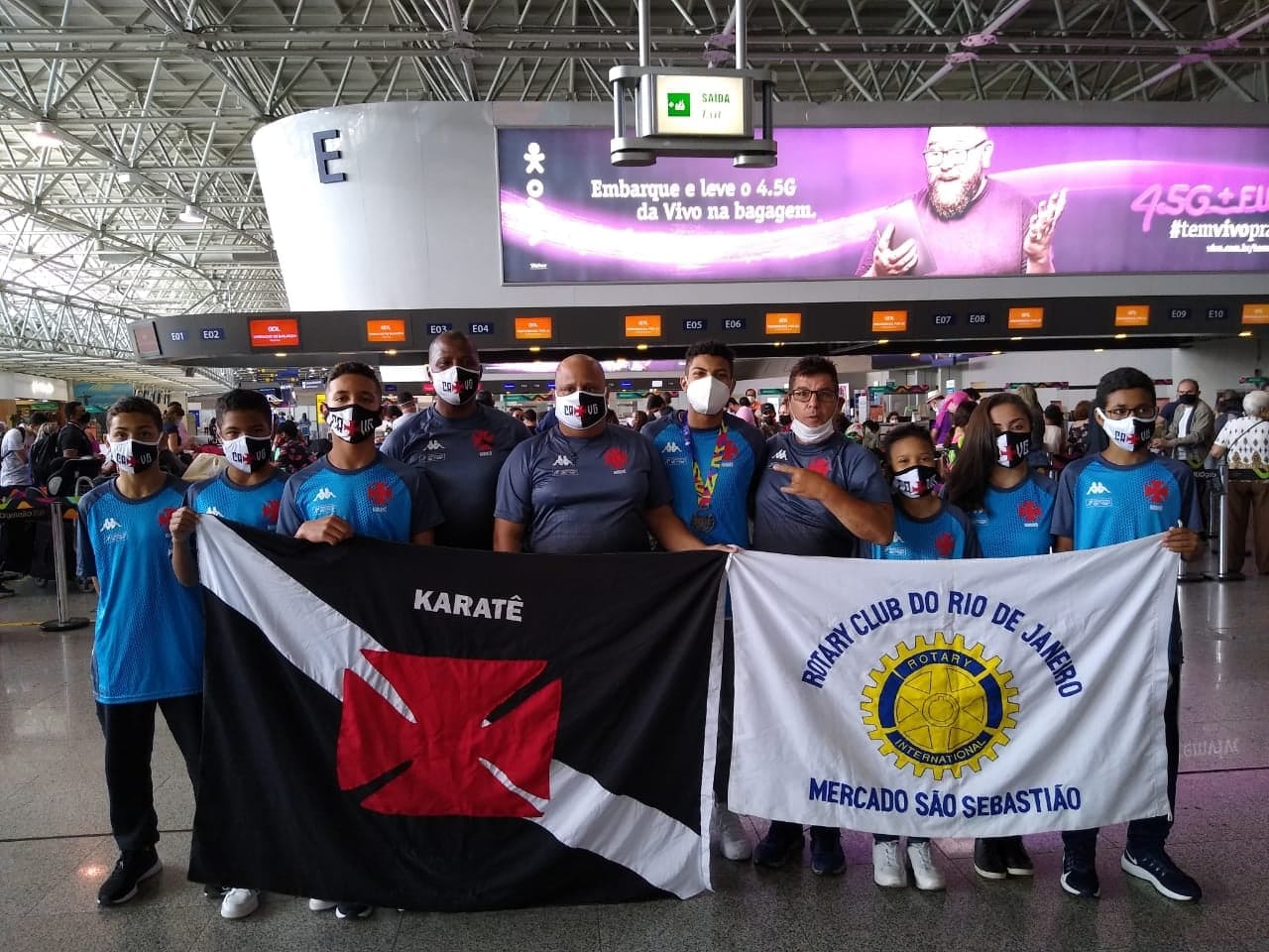 A equipe de karatê do Vasco da Gama, composta de seis atletas e com os técnicos Leandro Lourenço e Luis Bibão e a coordenação técnica do Manoel Varella embarcando para Fortaleza para participar do Campeonato Brasileiro Interclubes Sub-12 e Sub-14 tem apoio do Rotary Clube RJ Mercado São Sebastião/AARMOS (Associação dos Amigos Rotarianos Mantenedores de Obras Sociais). Boa Sorte a todos.