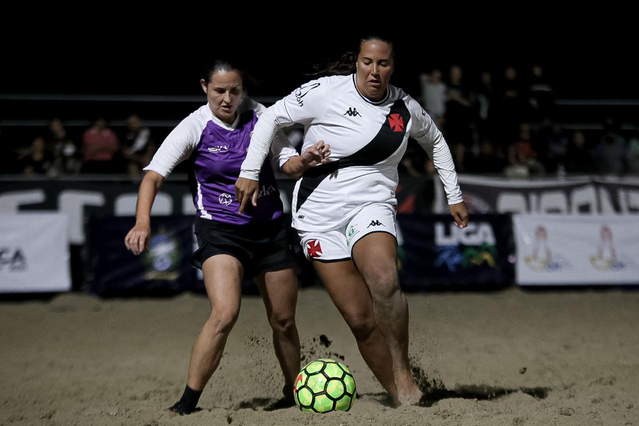 O Vasco estreou com uma goleada de 9 a 0 sobre o Carioca no Carioca de Beach Soccer Feminino na noite desta 4ª-feira na Praia de Copacabana.