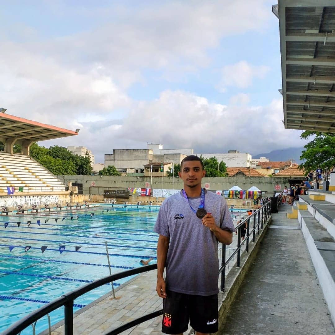 E o Homem Pássaro das Águas, o @r0dr160_51lv4 , também foi destaque no Sulamericano de Natação Master, atingindo suas melhores marcas pessoais. Esse evento foi realizado no Parque Aquático de São Januário. 🏊💢