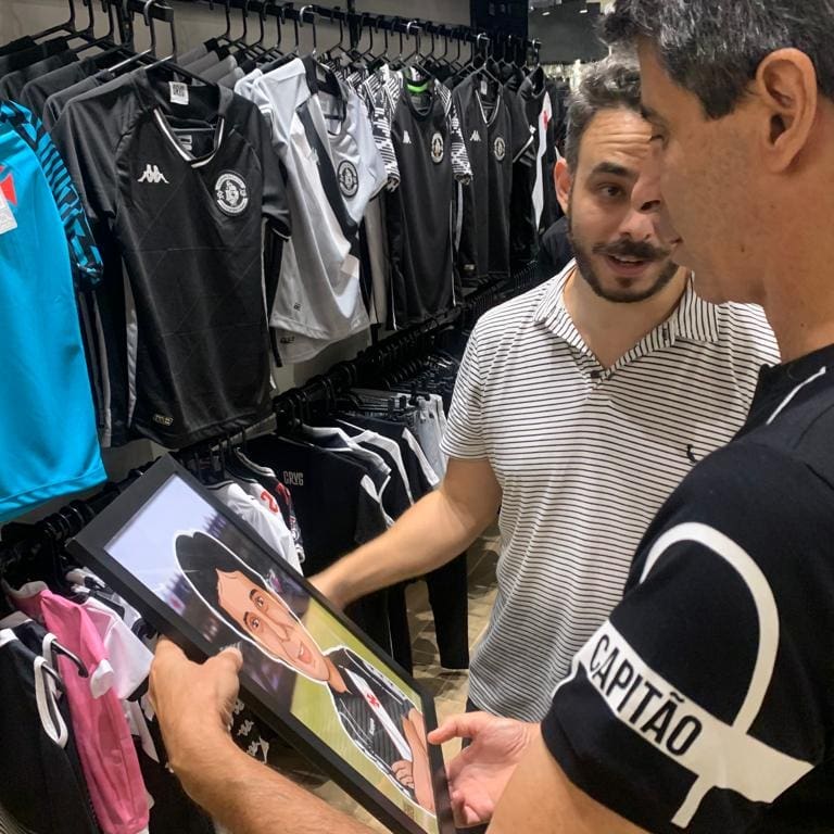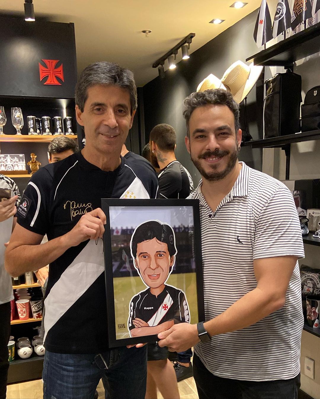 Artista vascaíno Eddie Souza presenteou Mauro Galvão com caricatura do ídolo