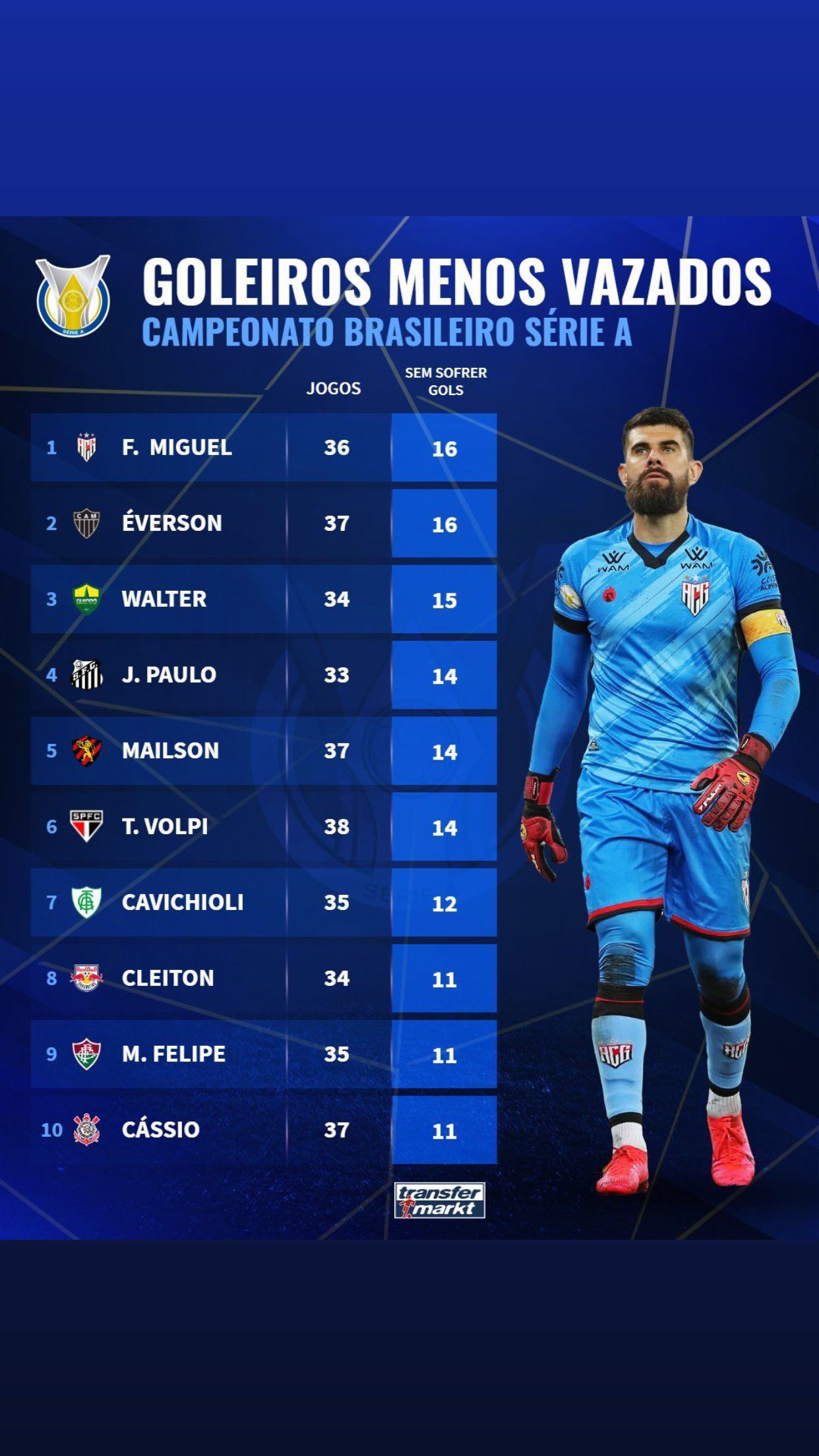 Fernando Miguel (36 anos) teve a maior Nota SofaScore (7.09) do Atlético-GO no @Brasileirao 2021! 👏