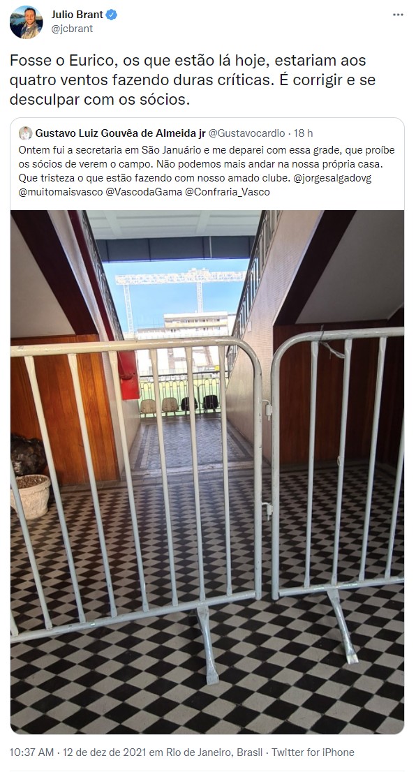 Fosse o Eurico, os que estão lá hoje, estariam aos quatro ventos fazendo duras críticas. É corrigir e se desculpar com os sócios.