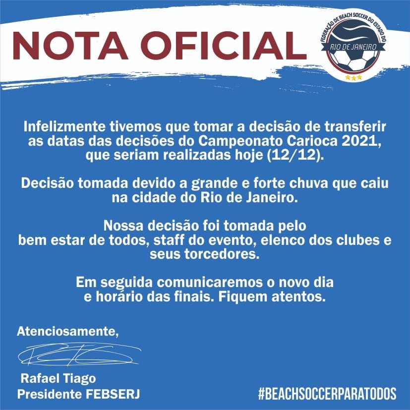 Beach Soccer: Em nota, Federação justifica adiamento das finais do Carioca