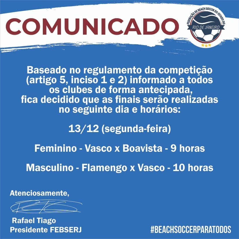 Atenção a todos para nova data das finais do Campeonato Carioca 2021 !