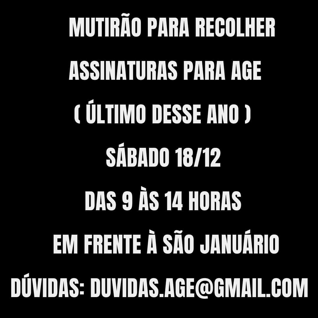 Sábado, dia 18/12 estaremos esperando por vocês pra assinar a AGE.