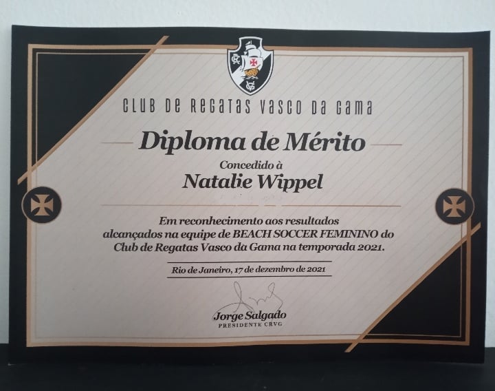 Fui surpreendida com uma homenagem do clube pelas conquistas de 2021. Como Vascaína, receber esse diploma de Mérito do meu clube, não tem preço. Agradeço imensamente a diretoria do clube na pessoa do VP @marceljosekaskus que tem abraçado o Beach Soccer e reconhecido o seu valor, ao nosso diretor @cesinhasegismundo que nos abraça como nunca fomos abraçadas, em lugar algum por onde passamos, gratidão pelo respeito e carinho q nos é dado. Nossa comissão técnica e irmãs de treinos, 2022 é logo ali e vamos buscar mais !