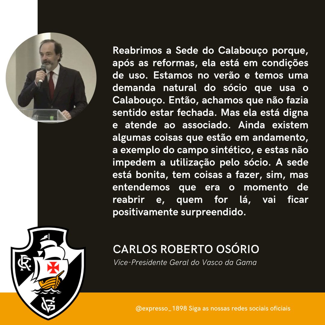 VP Geral, Osório fez contato conosco para explicar a situação do Calabouço.