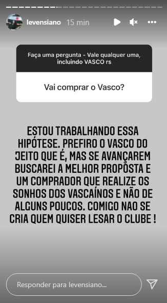 16/12/21 - Parcial Pesquisa: 83% são favoráveis a que Leven Siano seja VP de futebol do Vasco
