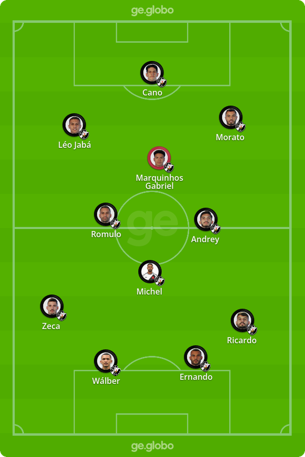 Fora o fato de não ter goleiro, essa poderia facilmente ser a escalação do Vasco em algum jogo da Série B. Nomes como Marquinhos Gabriel, Cano, Morato, Zeca e Andrey foram titulares durante toda competição. Dos 11 que saíram, Walber e Michel foram os que menos jogaram.