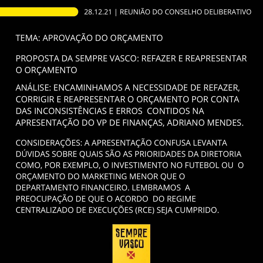 Sempre Vasco divulga seu posicionamento na reunião do Conselho Deliberativo que tratou do orçamento 2022