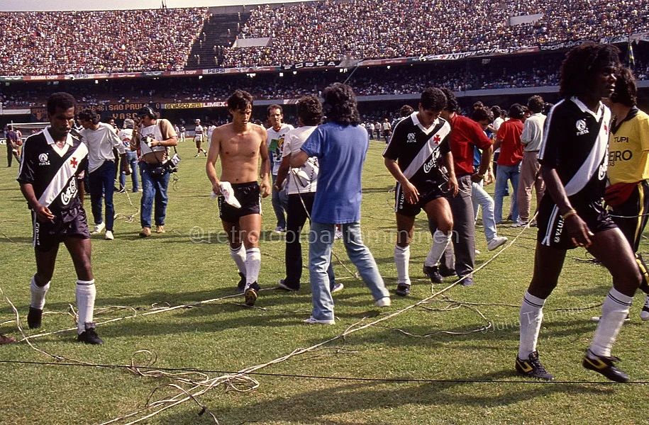 Cuidado pra não tropeçar com os fios das rádios... Zé do Carmo, Sorato, Bismarck e Holger Quiñónez do Vasco no caminho ao vestiário depois dos primeiros 45 minutos da final do Brasileirão de 1989 no Morumbi #zedocarmo #sorato #bismarck #bismarckbarretofaria #holgerquiñonez #holgerquinonez #holgerquiñónez #vascodagama #crvg #clubederegatasvascodagama #vasco #crvascodagama @sorato_89