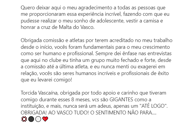 Foram 8 meses intensos de muito trabalho, dedicação, comprometimento e amor por essa instituição imensa. Um novo ciclo estar preste a se iniciar, e hoje, com o coração partido eu me despeço do Clube de Regatas Vasco da Gama.