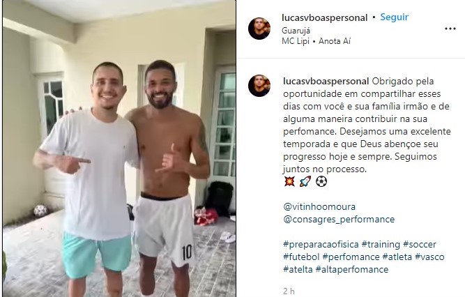 Personal do meia Vitinho acabou 'entregando' a vinda do meia para o Vasco. O jogador repostou vídeo feito pelo profissional em seu instagram e nas hashtags, é possível ver a #vasco.