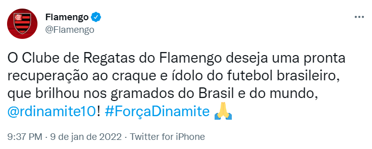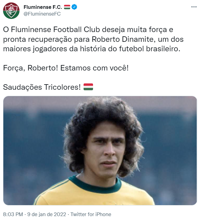 Flamengo e Fluminense divulgam mensagens de apoio a Roberto Dinamite