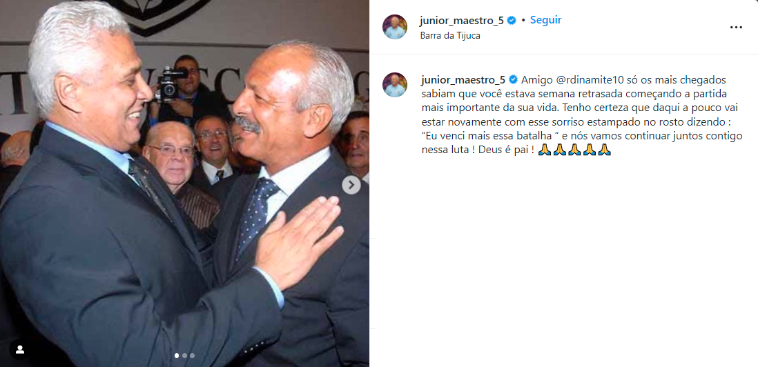 09/01/22 - Vasco faz publicação para Roberto Dinamite: 'Estaremos juntos sempre, você vai vencer mais essa batalha'