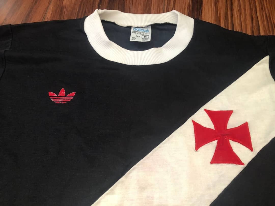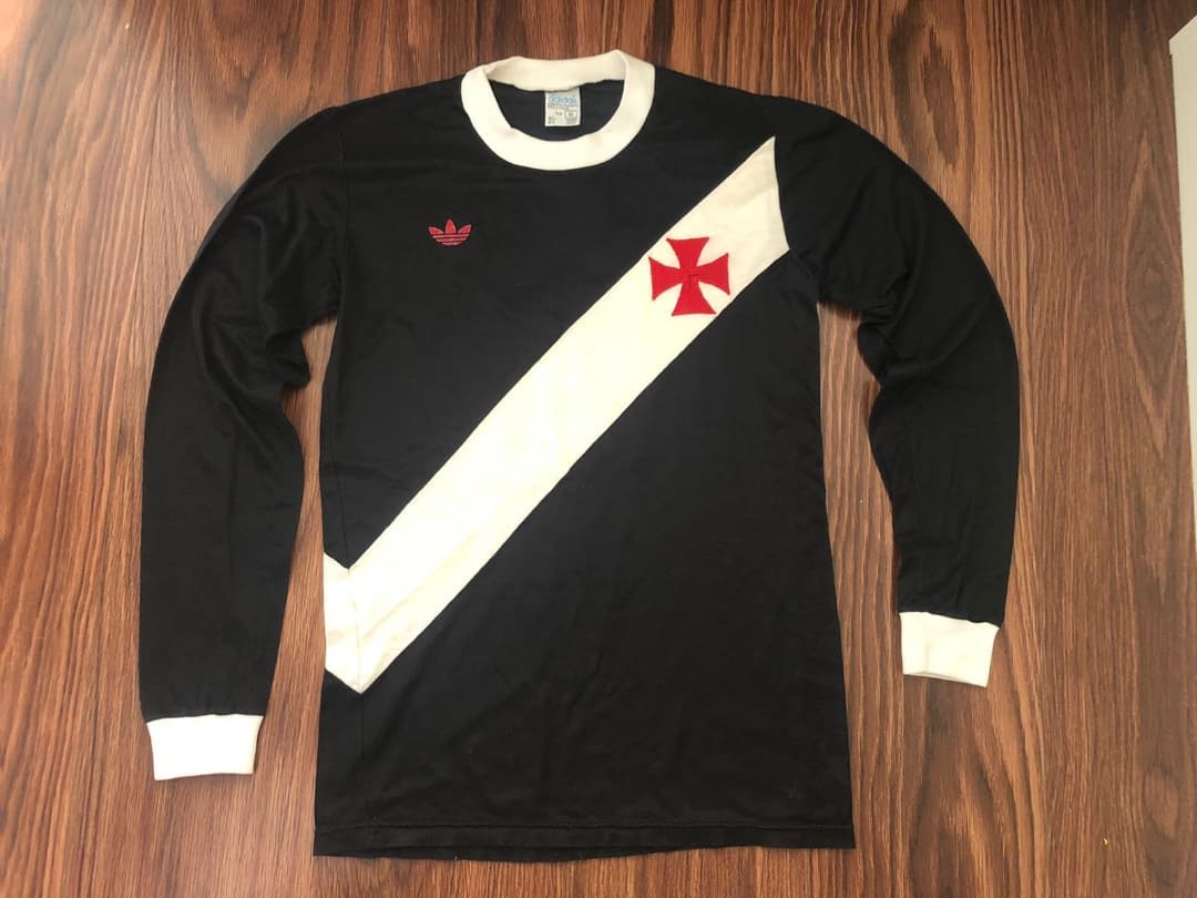 Colecionador mostra camisa preta de manga longa utilizada pelo Vasco em 1979