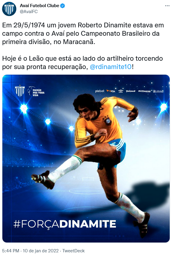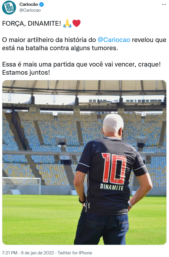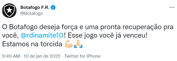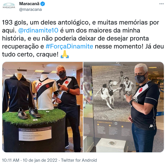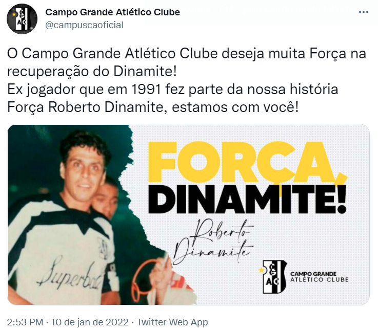Botafogo, Avaí, Campo Grande, Rio Negro, Maracanã e Campeonatos Brasileiro e Estadual postam mensagens de apoio a Dinamite