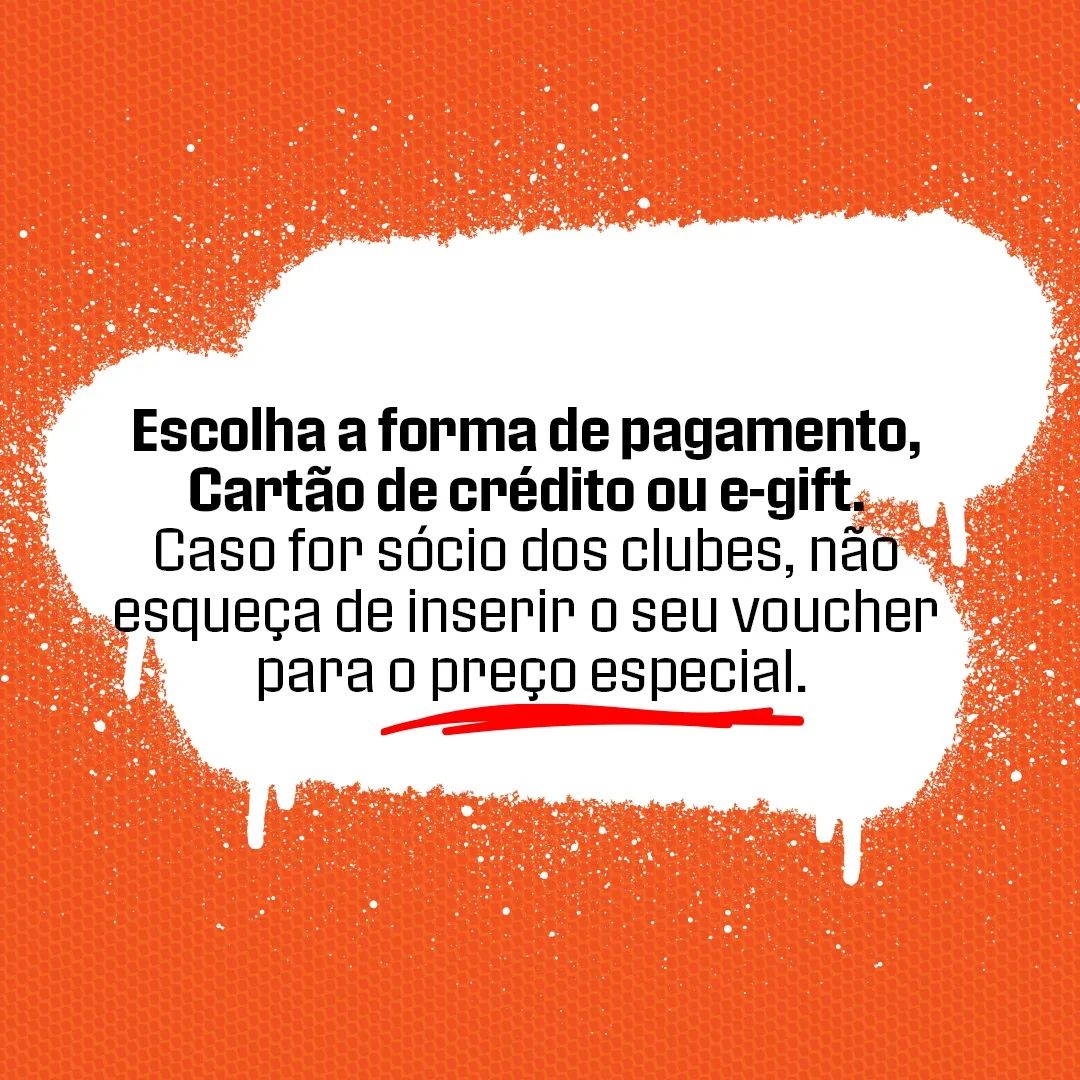 4️⃣ Escolha a forma de pagamento: cartão de crédito ou e-Gift. Caso for sócio dos clubes, não esqueça de inserir o seu voucher para o preço especial;