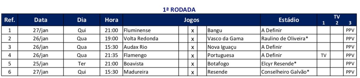 A estreia do Vasco no Carioca, contra o Volta Redonda, no dia 26, será às 19h.