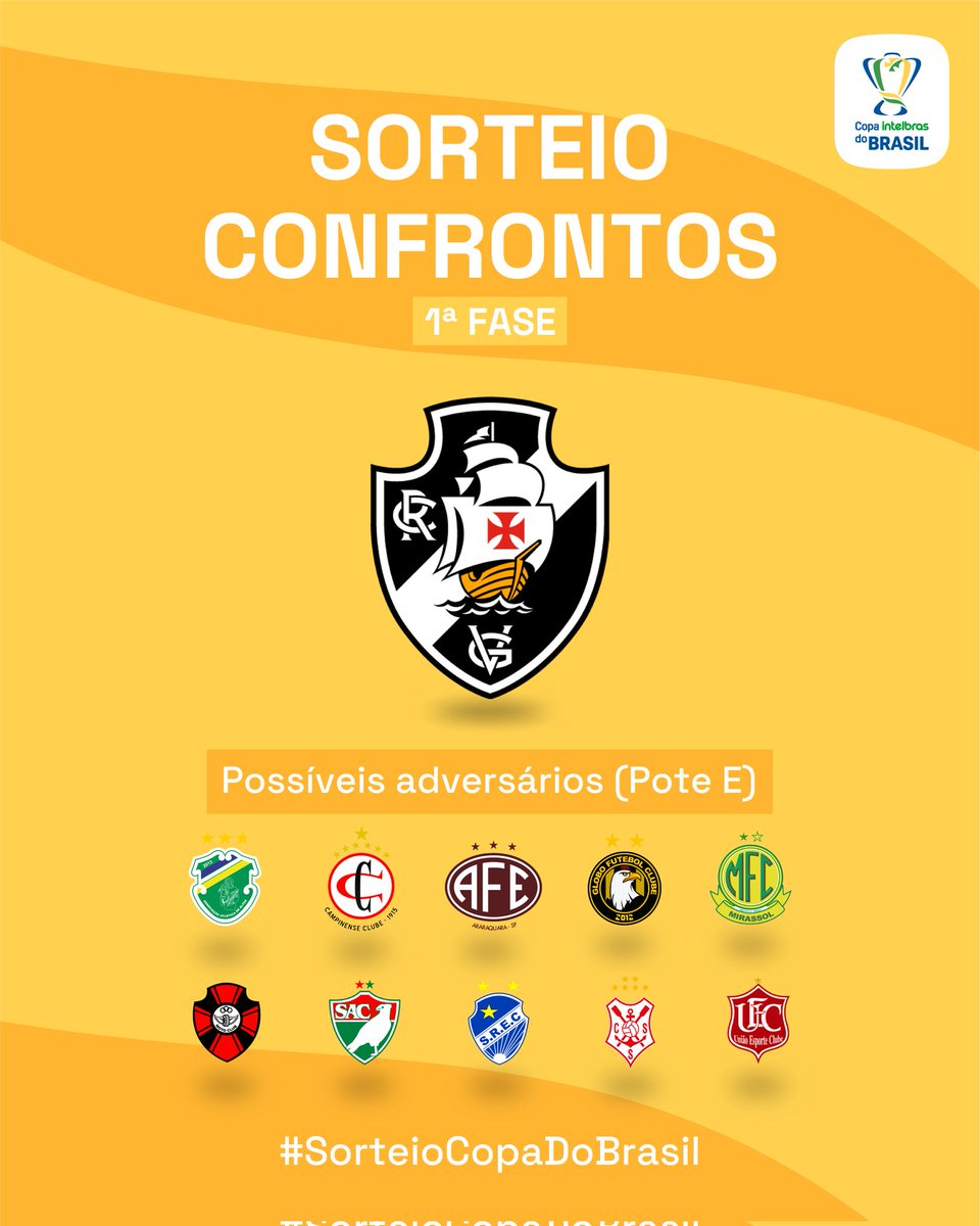 Página do Vasco no Facebook e CBF TV transmitirão sorteio da 1ª fase da Copa do Brasil nesta 2ª às 13h