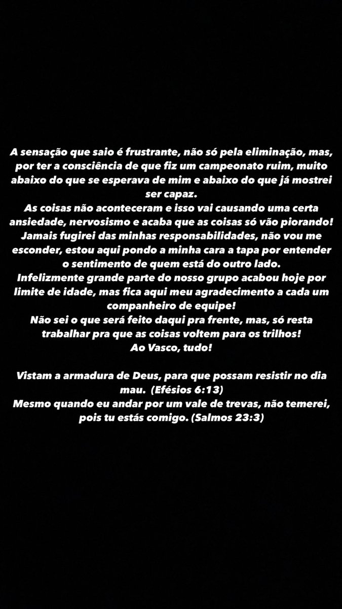 Juniores: Tavares admite atuações ruins e lamenta eliminação do Vasco na Copa São Paulo