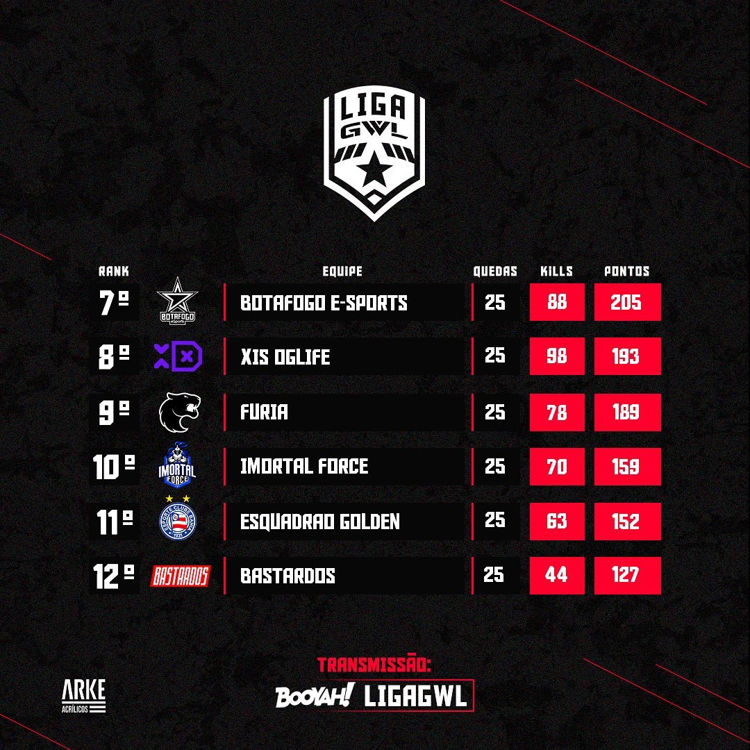 Transmissões em: booyah.live/ligagwl