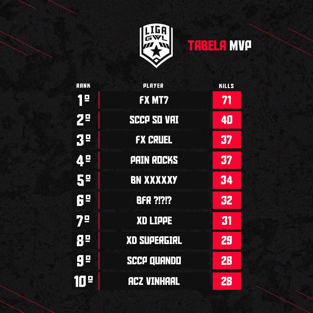 Hoje finalizamos a 5ª rodada da Liga GWL, os destaques de hoje foram: @paingamingbr | @fluxo_mt7ff .