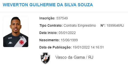 Lateral Weverton é registrado no BID da CBF