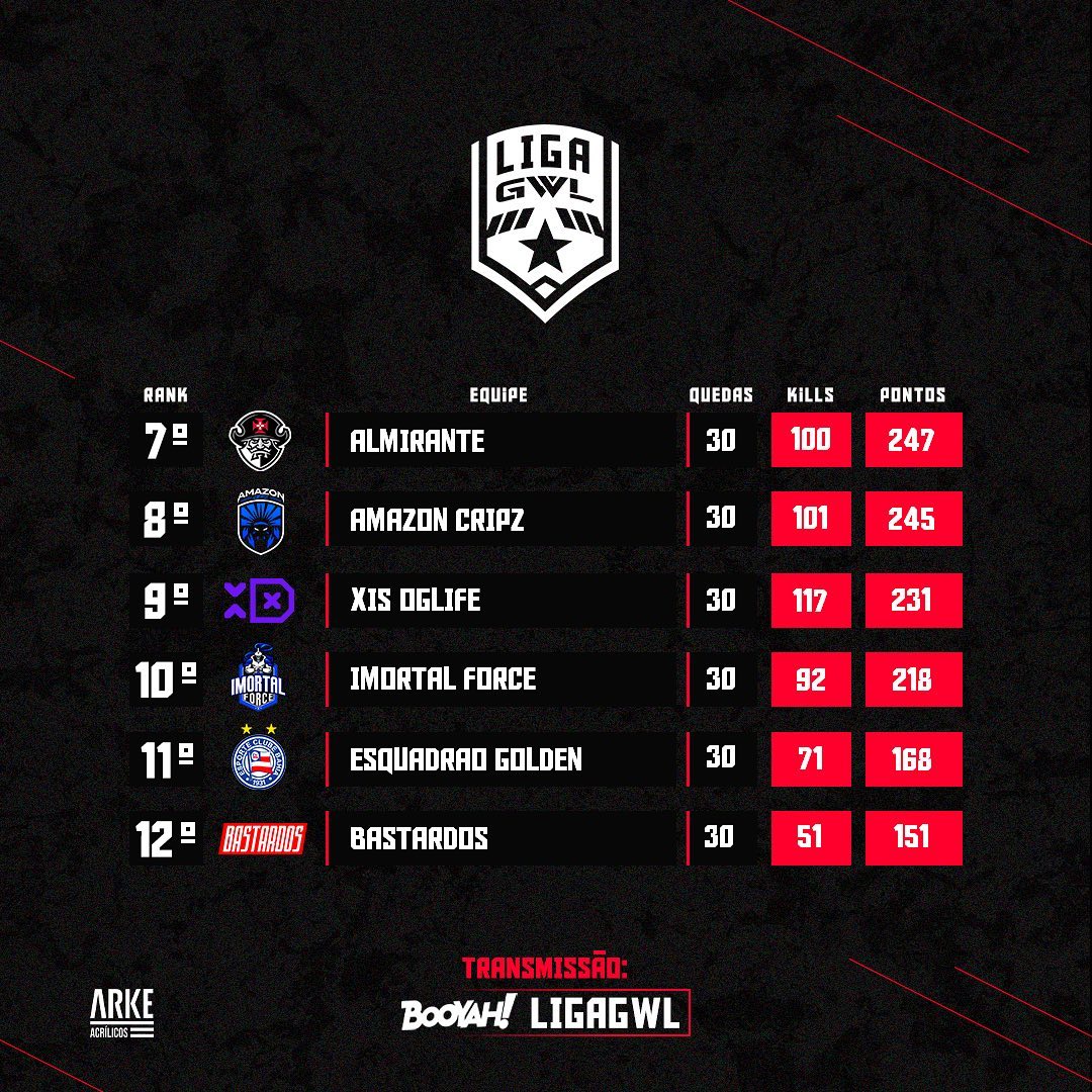 Transmissões em: booyah.live/ligagwl