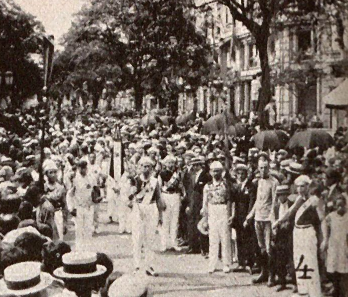 20/01/1922 - Há 100 anos, o Club de Regatas Vasco da Gama, por seus remadores trajados com o uniforme de honra, participa da procissão de São Sebastião, padroeiro da cidade do Rio de Janeiro na avenida Rio Branco.