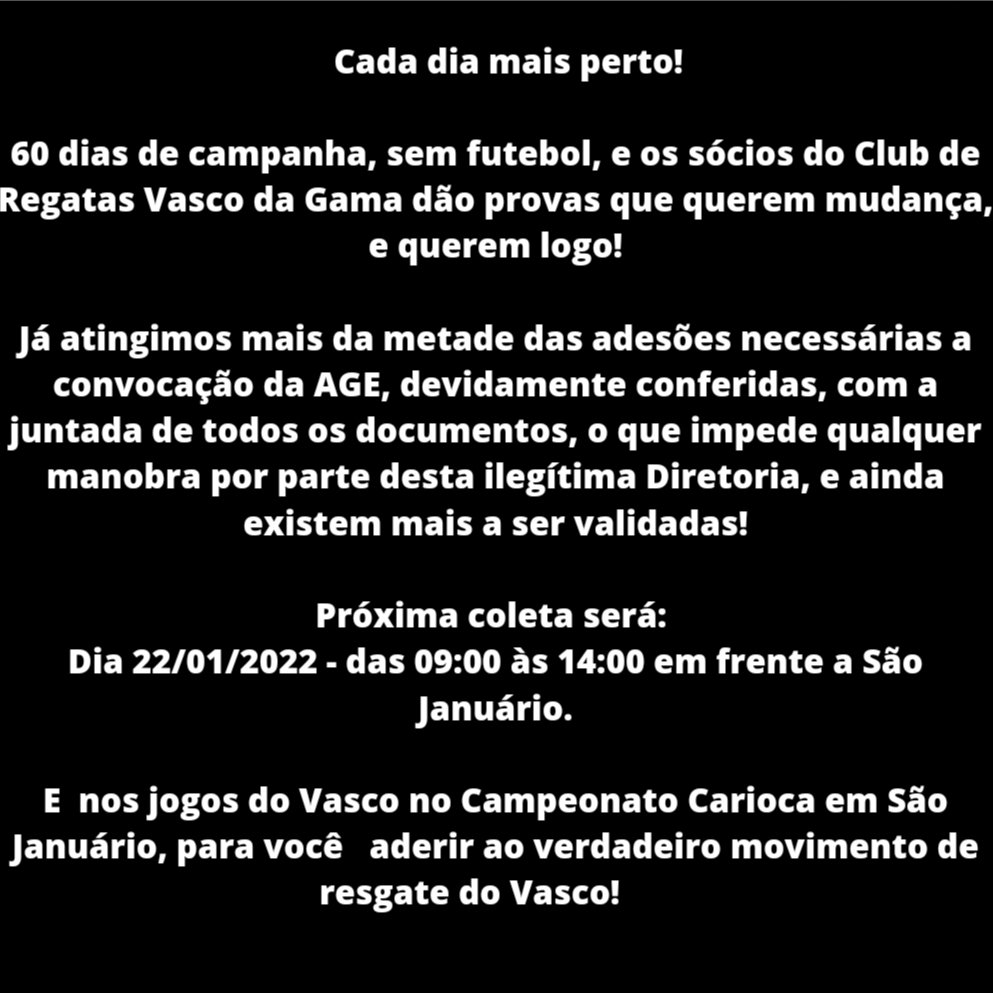 Grupos políticos recolherão assinaturas para convocação de AGE neste sábado em frente a São Januário