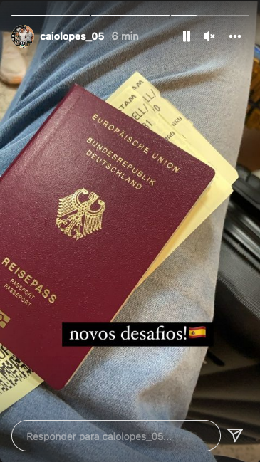 Caio Lopes publica foto com passaporte alemão e escreve 'novos desafios' com a bandeira da Espanha