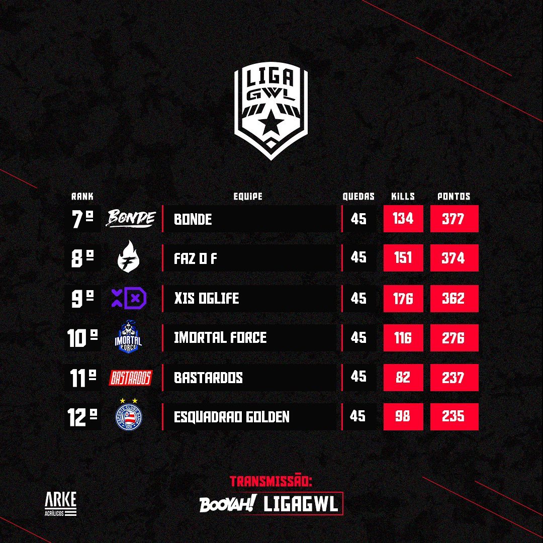 Transmissões em: booyah.live/ligagwl
