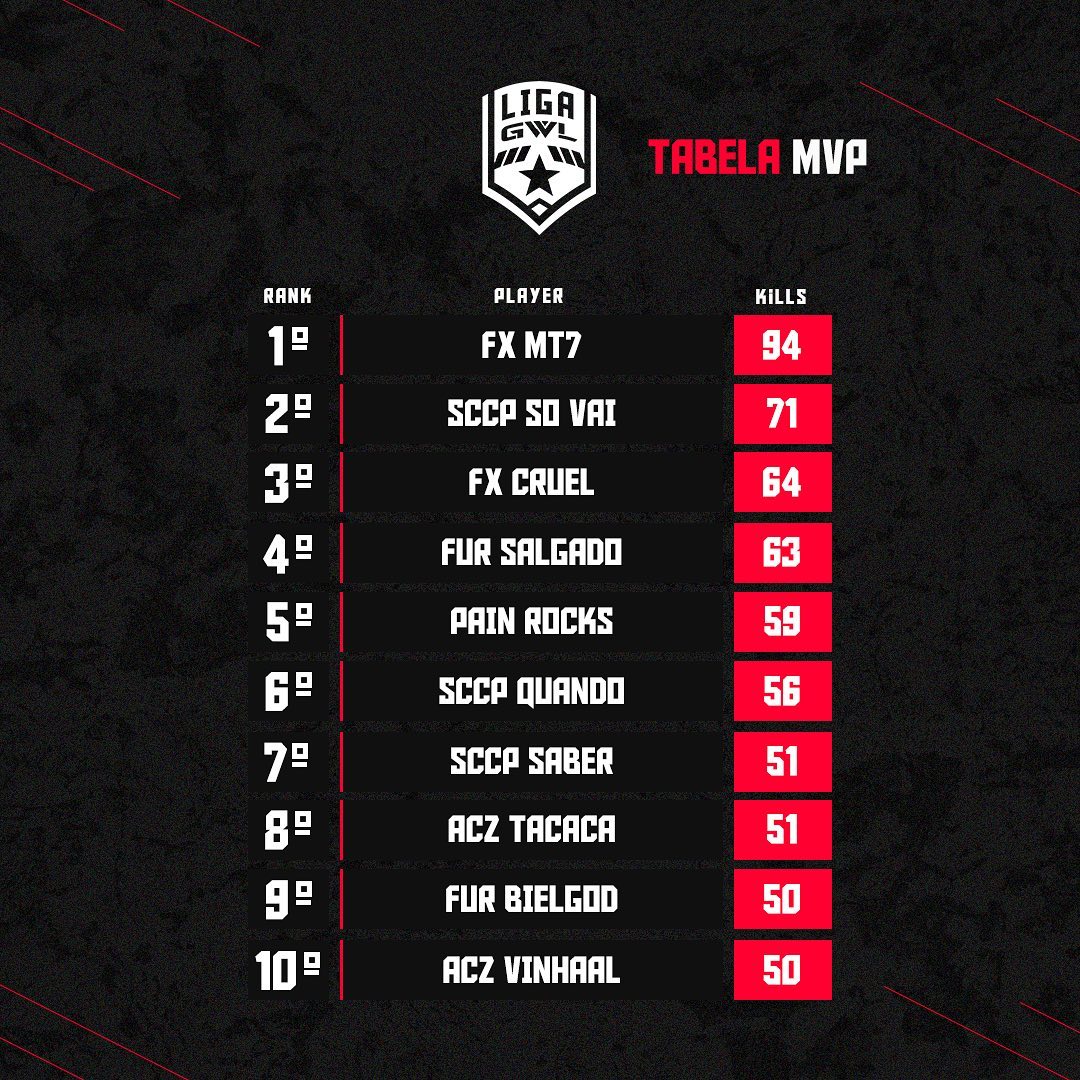 Hoje finalizamos a 9ª rodada da Liga GWL, os destaques de hoje foram eles novamente: @fluxogg (equipe base) | @fluxo_cruelff .