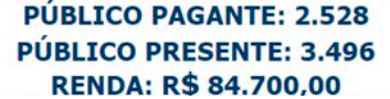 Volta Redonda 2 x 4 Vasco teve 2.528 torcedores pagantes, 3.496 torcedores presentes e renda de R$ 84.700,00