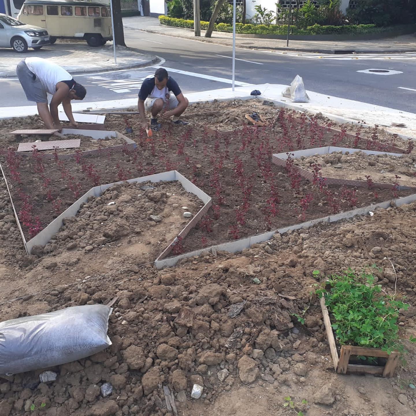 Vascaínos iniciam plantio de jardim em forma de Cruz de Malta em frente à sede náutica; veja fotos