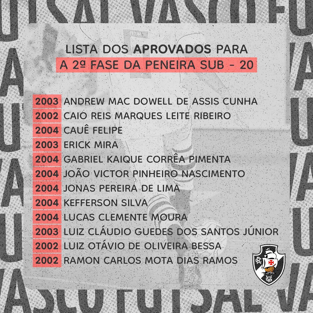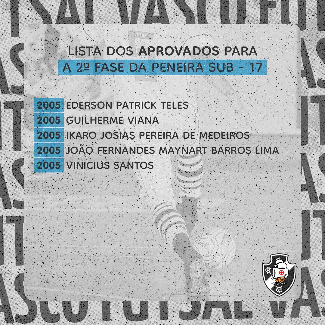 E aqui estão os nomes dos que passaram para a segunda fase da peneira. Parabéns, meninos! 🥳🤩