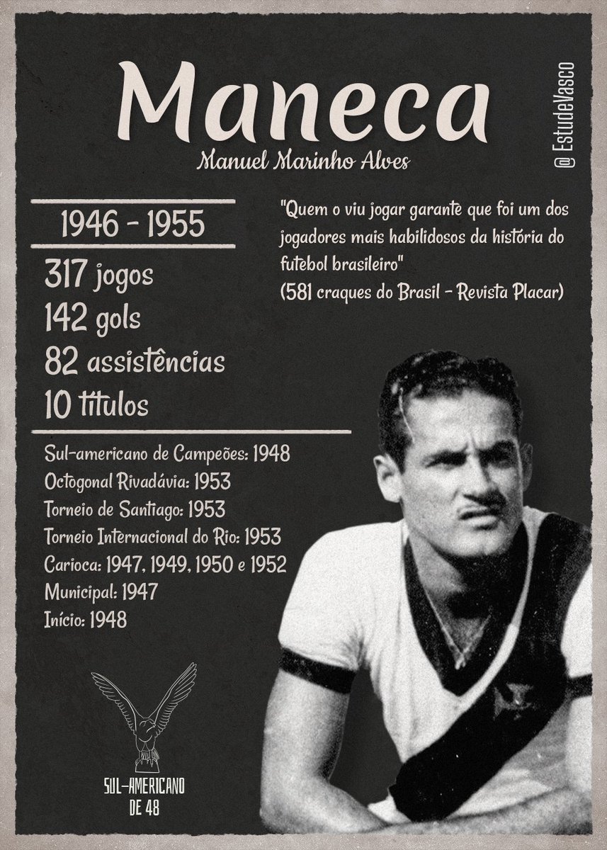 28/01/1925 - 97 anos de Maneca, craque imortal do Expresso da Vitória e um dos maiores meias da história do futebol brasileiro.
