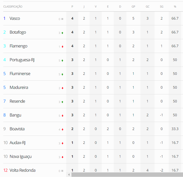 O 4 primeiros colocados da Taça Guanabara se classificam para as semifinais do Estadual.